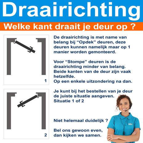 Ondank dat wij alle informatie met betrekking tot onze producten zo duidelijk mogelijk vermelden, het bepalen van bijvoorbeeld de juiste deurmaat met illustraties wordt uitgelegd en onze klantenservice altijd voor je klaar staat om antwoord te geven op al je vragen, vindt je het wellicht toch prettig als er een adviseur bij jou thuis langs komt voor persoonlijk advies en het inmeten van je nieuwe deur(en). Meer informatie vind je Hier >>>