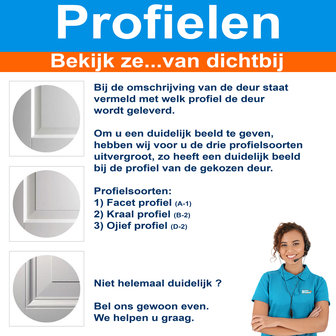 - Deze deur wordt geleverd met "Facet" profiel, maar is ook met de volgende profielopties leverbaar: